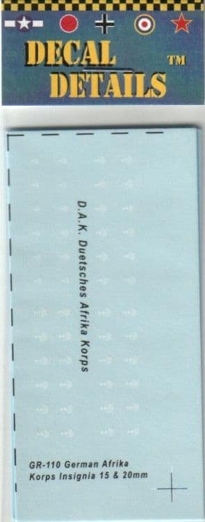 German WWII Insignia w/ swastika for 15 and 20mm armor. Insignia outlined in white. 2 sheets per pack. Waterslide decals